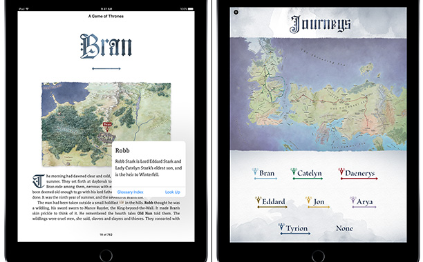 Em homenagem ao 20º aniversário de Guerra dos Tronos, foi lançada uma edição melhorada do primeiro livro das Crônicas de Gelo e Fogo de George R. R. Martin e exclusiva em iBooks, para iPhones e iPads.