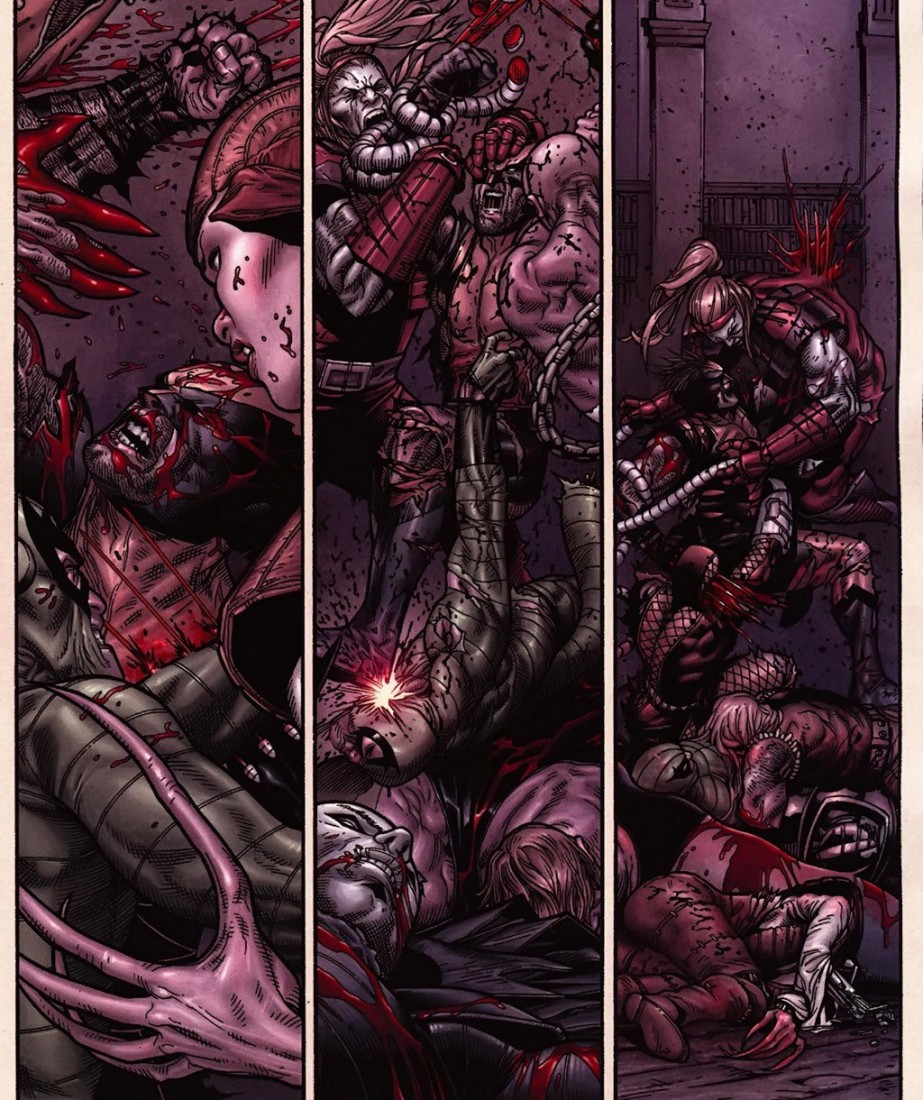 Como é um mundo de super-heróis sabemos que essa saga do Logan seria usada para compor uma nova série da Marvel e esta necessidade de fazer disto uma série e impor como grande clímax o momento em que o vemos sacar suas garras só para termos o Wolverine de volta deveria sem épico, mas não foi, pelo menos não para mim. Imaginemos todo o histórico do Logan, todas as tragédias, todos os amores perdidos, todo o seu drama pessoal com o projeto Arma X, culminando na chacina involuntária do grupo dos X-Men (veja bem, ele matou todos do instituto Xavier, inclusive Jubileu), para, na primeira contradição abrir mão do seu juramento? Não estou a dizer que o assassinato de sua esposa e filhos foi pouco, mas que não há uma gradação da fúria. Não há construção de uma fera enjaulada.