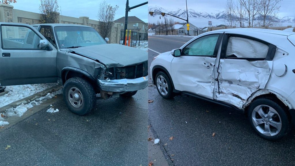 Bird Box Challenge while driving…predictable result. This happened on Monday as a result of the driver covering her eyes while driving on Layton Parkway. Luckily no injuries. pic.twitter.com/4DvYzrmDA2