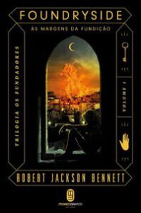 ![[Resenha] Foundryside – Às Margens da Fundição – Robert Jackson Bennett Capa do livro. Um comôdo totalmente escuro, dando vista para a paisagem externa vista através de uma janela em modelo antigo e topo ovalado, no centro da capa. A paisagem é composta por uma lua crescente no céu, e diversas casa ao fundo, onde muitas estão pegando fogo. Na beirada da janela, uma pessoa em meio as sombras, sentado e com roupas escuras e capuz. Topo o título do livro, e o texto](https://leitorcabuloso.com.br/wp-content/uploads/2022/02/Foundryside-Site-696-390.jpg)